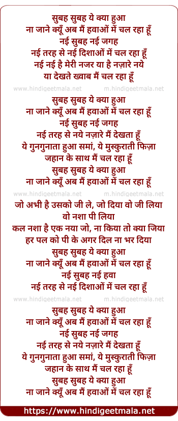 Lyrics of Subah Subah Ye Kya Hua - सुबह सुबह ये क्या हुआ