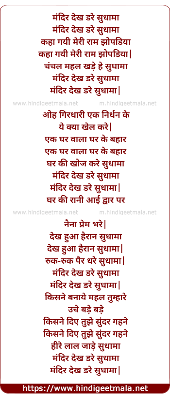 Poetic Translation - Lyrics of Sudhama Mandir Dekh Dare