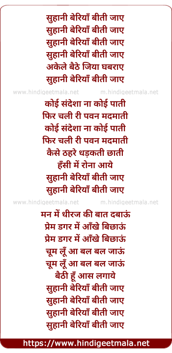 Lyrics of Suhani Beriyan Beeti Jaye - सुहानी बेरियाँ बीती जाए