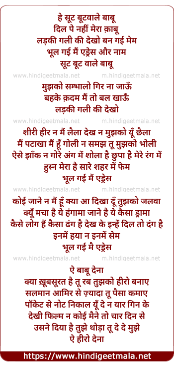 Lyrics of Suit Boot Vaale Baabu - अ : हे suit bootवाले बाबू