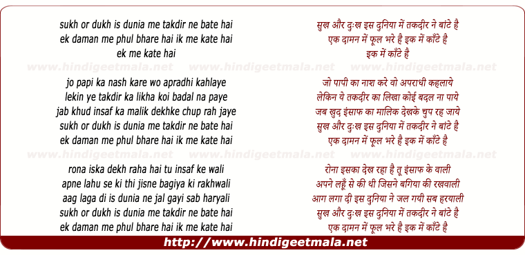 Lyrics of Sukh Aur Dukh Is Duniya Me Takdir Ne Bate Hai - सुख और दुःख इस दुनिया में तकदीर ने बांटे है
