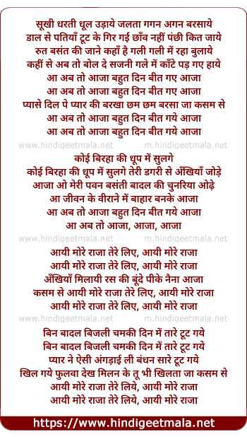 Lyrics of Sukhi Dharti Dhul Udaye Jalta Gagan Agan Barsaye - सूखी धरती धूल उड़ाये जलता गगन अगन बरसाये