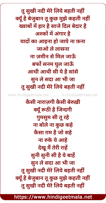 Lyrics of Sukhi Nadi - तू सुखी नदी मेरे लिये बहती नहीं