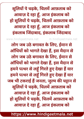 Lyrics of Suliyon Pe Chadke Chume (Part- 2) - सूलियों पे चढ़के, चिलमें आफ़ताब को