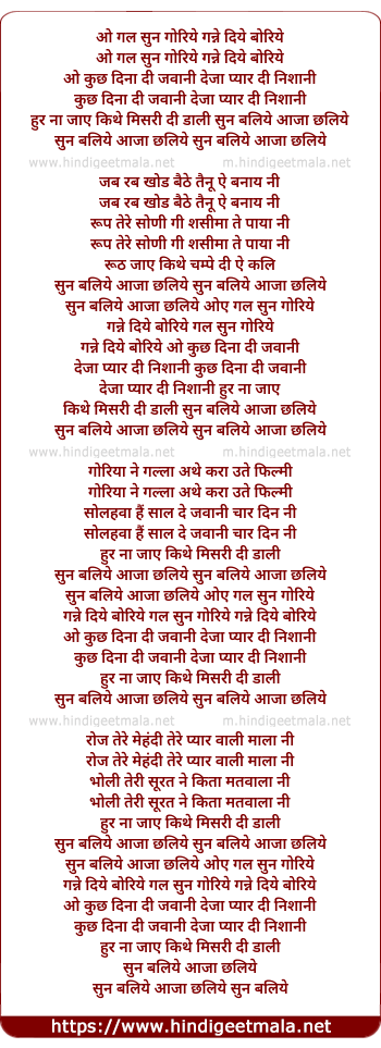 Lyrics of Sun Baliye (Daler Mehndi) - ओ गल सुन गोरिये
