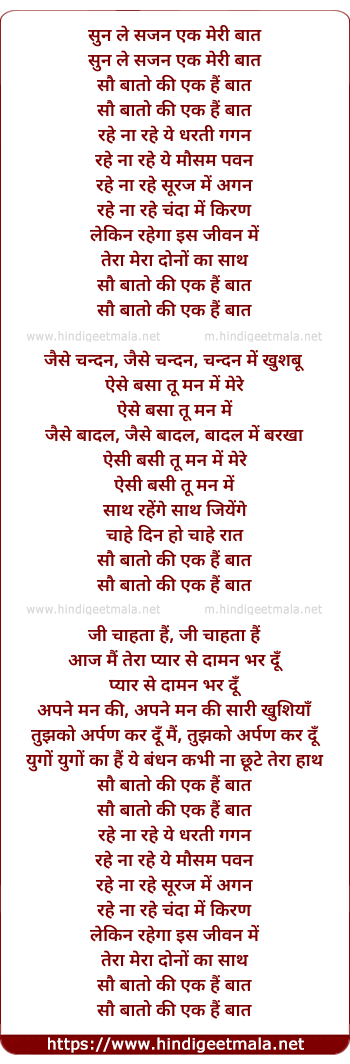 Lyrics of Sun Le Sajan Ek Meri Baat - सुन ले सजन एक मेरी बात