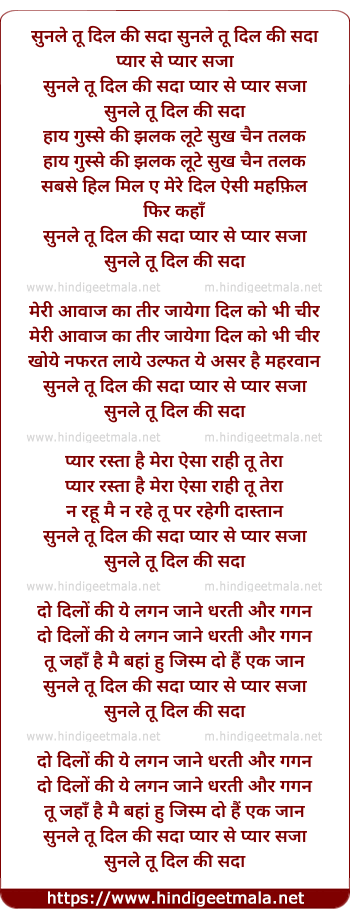 Lyrics of Sun Le Tu Dil Ki Sada (Happy) - सुनले तू दिल की सदा (हैप्पी)