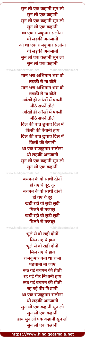 Lyrics of Sun Lo Ek Kahani Sun Lo - सुन लो एक कहानी सुन लो