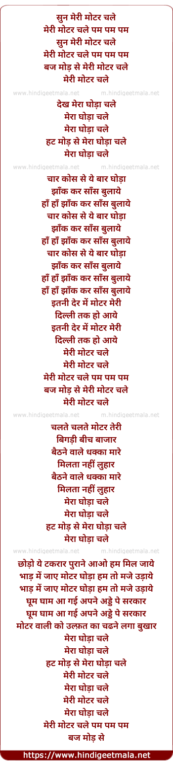 Poetic Translation - Lyrics of Sun Meri Motor Chale Pam Pam Pam - सुन मेरी मोटर चले