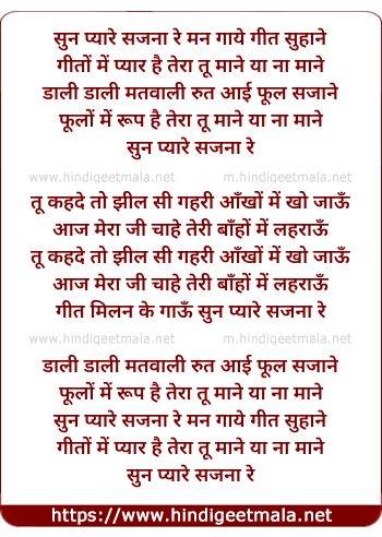 Lyrics of Sun Pyare Sajna Re Mann Gaye Geet Suhane - सुन प्यारे सजना रे मन गाये गीत सुहाने
