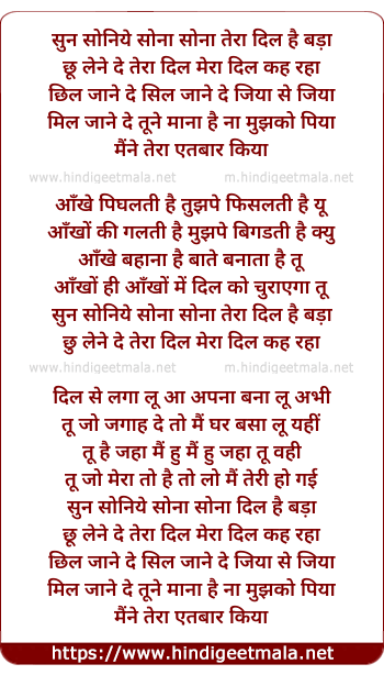 Lyrics of Sun Soniye Sona Sona Tera Dil Hai Bada - सुन सोनिये सोना सोना तेरा दिल है बड़ा