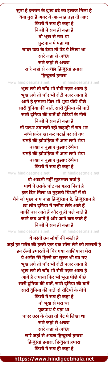 Lyrics of Suna Hai Insan Ke, Kisii Ne Sach Hi Kaha Hai - सुना है इन्सान के, किसी ने सच ही कहा है