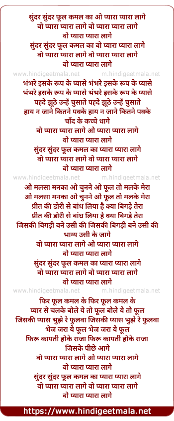 Lyrics of Sundar Sundar Phool Kamal Ka - सुंदर सुंदर फूल कमल का