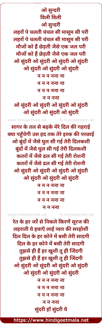 Lyrics of Sundari O Sundari - ओ सुन्दरी
