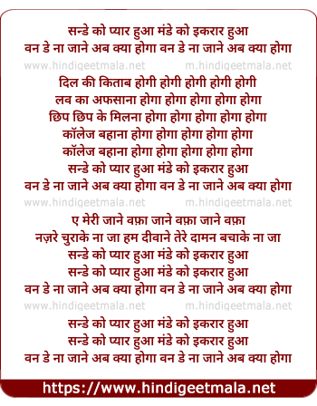 Lyrics of Sunday Ko Pyar Hua, Monday Ko Ikrar Hua - सन्डे को प्यार हुआ, मंडे को इकरार हुआ