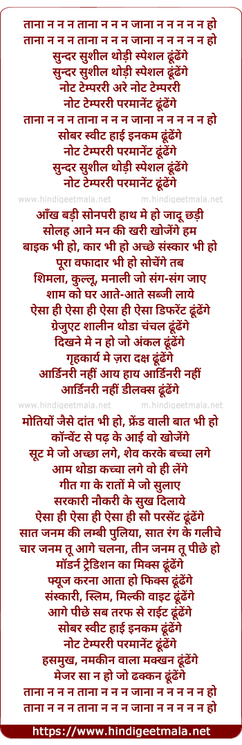 Lyrics of Sunder Susheel - सुन्दर सुशील