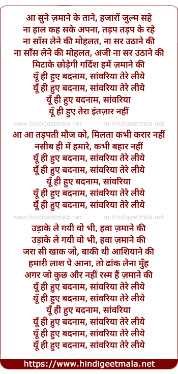 Poetic Translation - Lyrics of Sune Zamane Ke Taane - सुने ज़माने के ताने