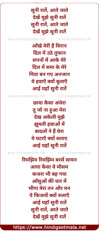 Lyrics of Suni Raate - सूनी रातें, आते जाते