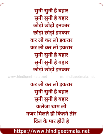 Lyrics of Suni Suni Hai Bahar Chhodo Inkar - सुनी सुनी है बहार छोड़ो इनकार