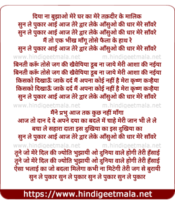 Lyrics of Sun Le Pukar Aayi Aaj Tere Dwaar - सुन ले पुकार आई आज तेरे द्वार