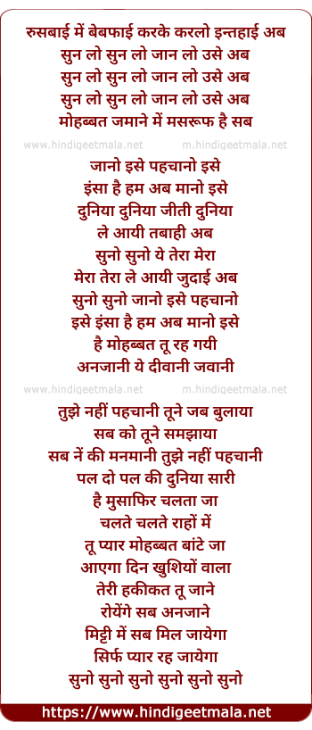 Lyrics of Sunlo Sunlo Jaan (Sunoh) - सुन लो सुन लो जान
