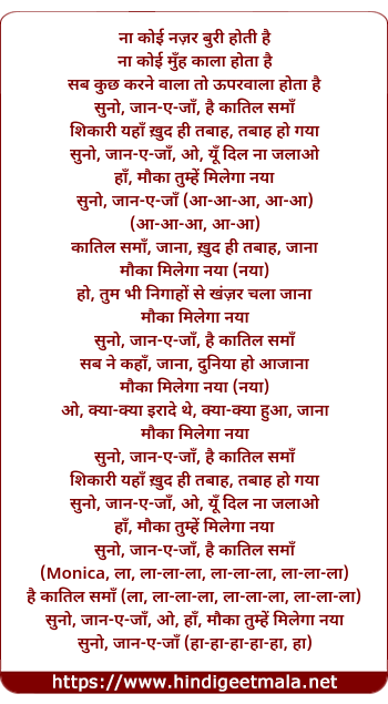 Lyrics of Suno Jaanejaan Hai Qatil Sama - सुनो जानेजां है कातिल समा