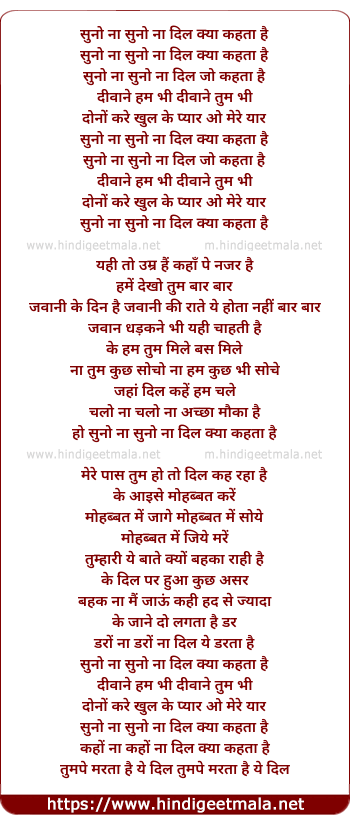 Lyrics of Suno Na Dil Kya Kehta Hain - सुनो ना दिल क्या कहता है