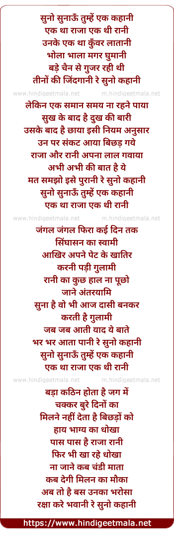 Lyrics of Suno Sunau Tumhe Ek Kahani - सुनो सुनाऊँ तुम्हें एक कहानी