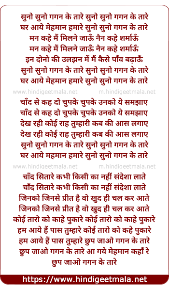 Lyrics of Suno Suno Gagan Ke Tare - सुनो सुनो गगन के तारे