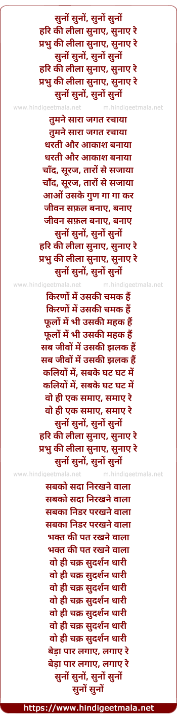 Lyrics of Suno Suno Hari Ki Leela - सुनों सुनों, सुनों सुनों