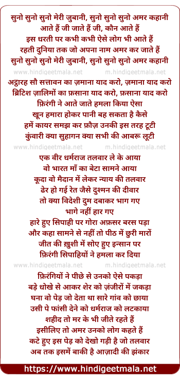 Lyrics of Suno Suno Suno Meree Jubanee - सुनो सुनो सुनो मेरी जुबानी