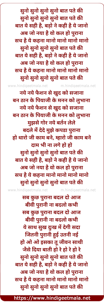 Lyrics of Suno Suno Suno Suno Baat Pate Ki - सुनो सुनो सुनो सुनो बात पते की
