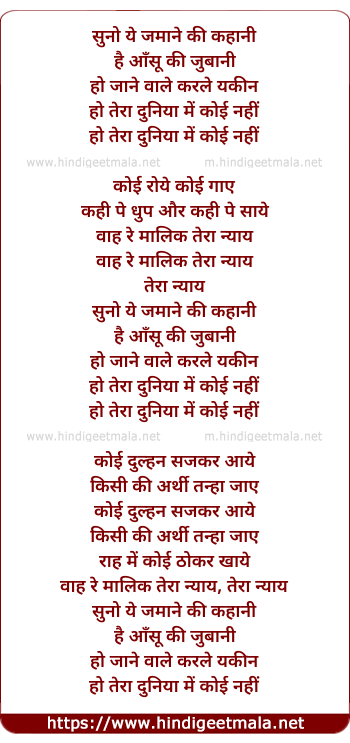 Lyrics of Suno Ye Zamane Ki Kahani - सुनो ये जमाने की कहानी