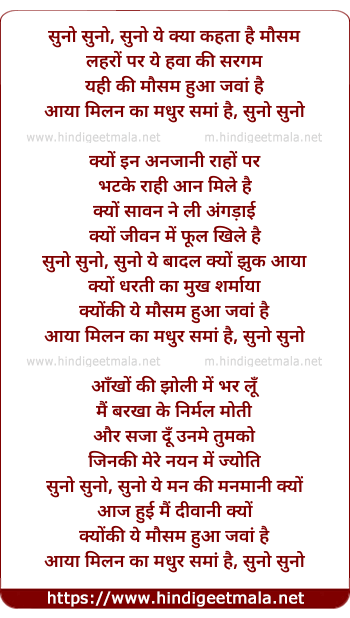 Lyrics of Suno Yeh Kya Kahta Hai Mausam - सुनो ये क्या कहता है मौसम
