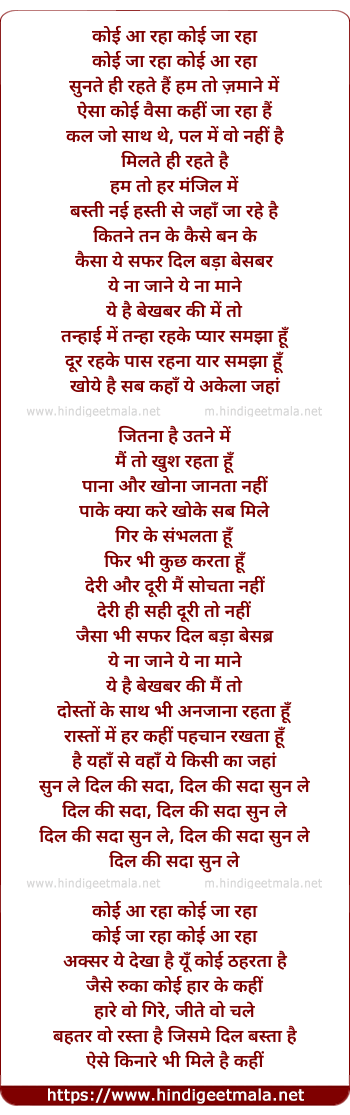 Lyrics of Sunte Hi Rehte Hai - कोई आ रहा कोई जा रहा