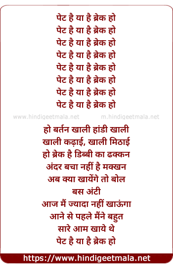 Lyrics of Pet Hain Ya Hain Break Ho - पेट है या है ब्रेक हो