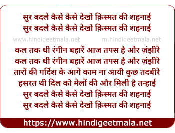 Lyrics of Sur Badle Kaise Kaise Dekho Qismat Ki Shahnai - सुर बदले कैसे कैसे देखो क़िस्मत की शहनाई