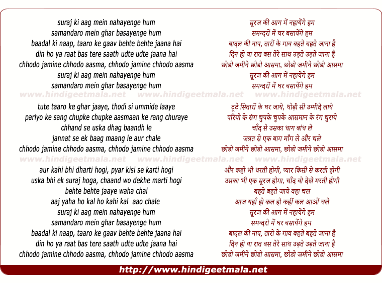 Lyrics of Suraj Ki Aag Me - सूरज की आग में नहायेंगे हमsuraj ki aag mein nahayenge hum