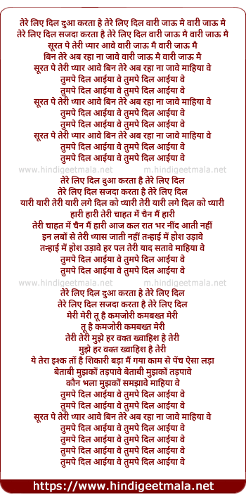 tere liye dil duaa karta hai tere liye dil vari jau mai vari jau mai