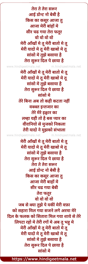 Lyrics of Surroor (Remix) - तेरा ते तेरा सरूर