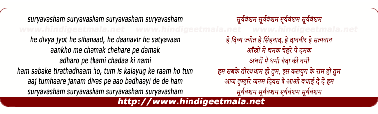 Lyrics of Suryavansham, He Divya Jyot He Sinhanaad He Daanavir - सूर्यवंशम,हे दिव्य ज्योत हे सिंहनाद हे दानवीर