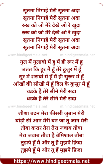 Lyrics of Sutna Nigahen Meri Sutna Ada - सूतना निगाहें मेरी सूतना अदा
