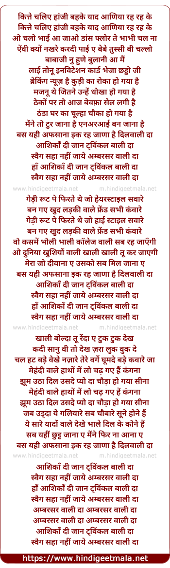 kitt chaliye hanji behke yaad aaniya reh reh ke