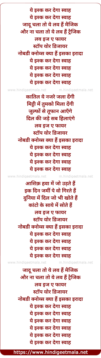 ye ishq kar dega swah