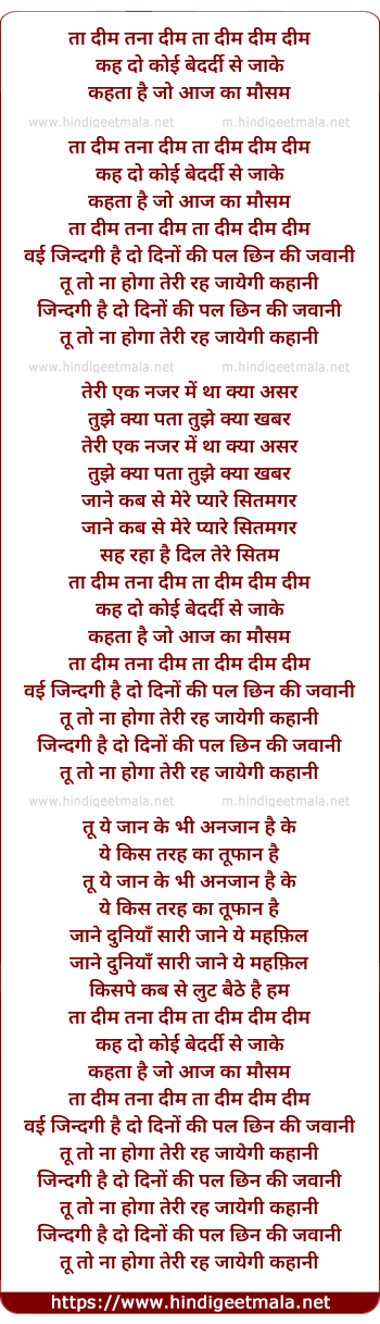Lyrics of Ta Deem Tana Deem - ता दीम तना दीम