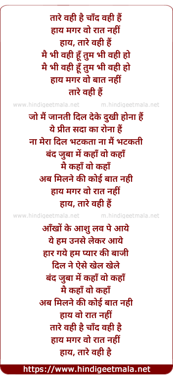 Lyrics of Tare Vohi Hai Chand Vohi Hai - तारे वही है चाँद वही हैं