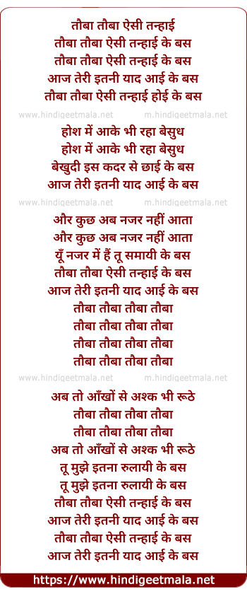 Lyrics of Tauba Tauba - तौबा तौबा ऐसी तन्हाई