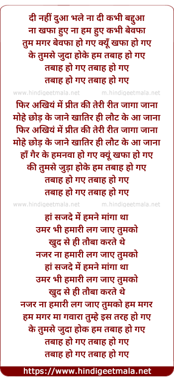 Poetic Translation - Lyrics of Tabah Ho Gaye - तबाह हो गए