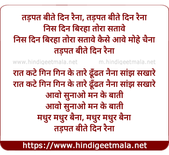 Lyrics of Tadapat Bite Din Rainaa - तड़पत बीते दिन रैना