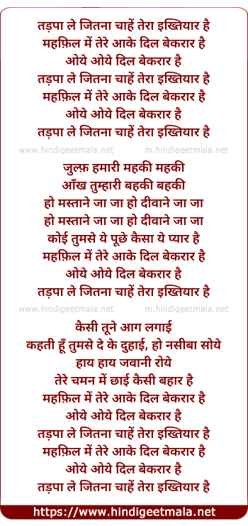 Lyrics of Tadpa Le Jitna Chahe - तड़पा ले जितना चाहे
